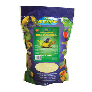 Feeding: Golden Lori Rice Formula has been designed to provide a total feed for all Loris and Lorikeets. It may be fed as a dry powder or water added to form a wet mix. Golden Lori Rice Formula is a complete diet, no additional dietary supplementation is necessary. Vegetables, fruit or Blossom Nectar may be given as behavioural enrichment.