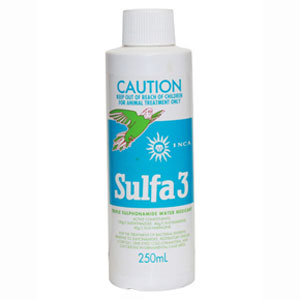 Sulfa 3 250ml Out of stock SKU: LI10B Category: Bird Medications and Treatments Related products Ornithon 500g (mineral & Vitamin Supplement) Calcivet 1L Calcivet 50ml Avi Care Concentrate 5L